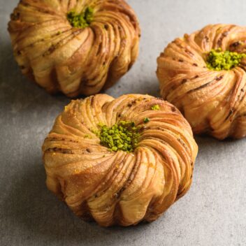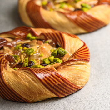 Cette magnifique couronne en pâte levée feuilletée bicolore cache en son co…